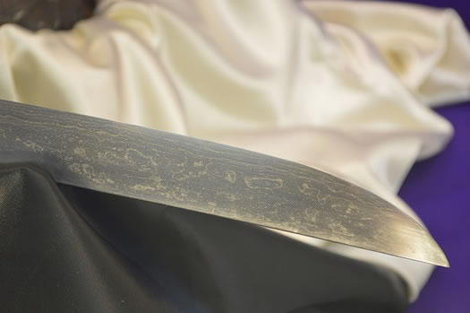 隕鉄ならではの不思議な刃文様が浮き出ている。 |