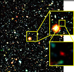 いいえ、137億光年離れた“最果ての銀河”は、宇宙の年齢と同じ137億年前に誕生したことが分かっているのです。