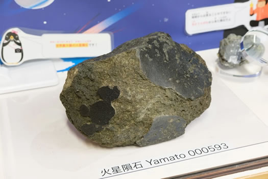 | 南極探検隊が発見した「火星の石」(大阪・関西万博で展示中) |