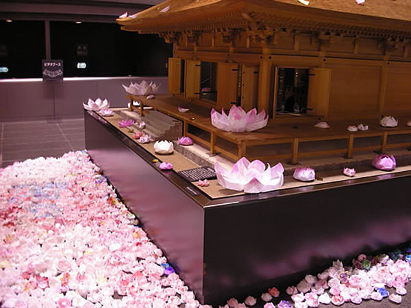 この博物館の展示解説員を務めたこともある国府氏の主導で、会津の子ども達が蓮の折り紙を折りました。