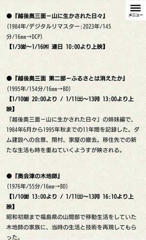先日、東根市フォーラムで「越後奥三面」を見に行った。