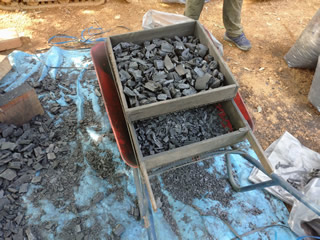 一輪車の上でいきなり目の粗い1番ふるいをふつて、