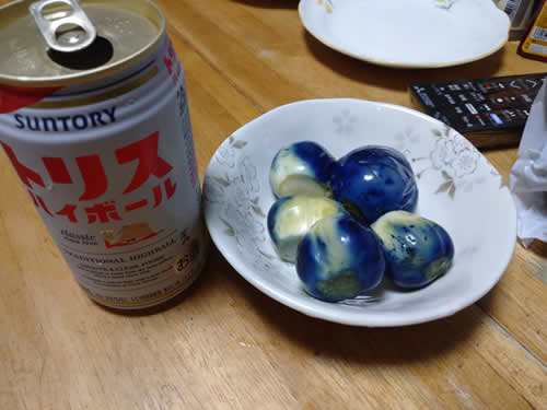 早速週末でもあり、 初物を上の子が残していつたハイボールで頂く。 やつぱお酒に合うな~