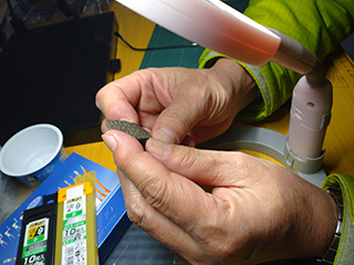 子供小さい時に遊んでもらつた職場の先輩宅で土器観察。