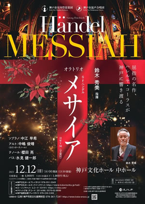 予習に使ったのは、コロナ真っ盛りの2021年12月12日(日)の鈴木秀美指揮神戸市室内管弦楽団&神戸市混声合唱団による演奏(ポスター上掲)。字幕付きはこれしか無かったのだ。このコンサート自体も字幕付きだった。