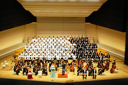 しかし今回の山下一史指揮藝大フィル(コンサートミストレス:澤亜樹)の演奏会は字幕はなし。「プログラムに英語・日本語の歌詞が載っています。一部1000円です。チャリティーコンサートなので」と係の女性。