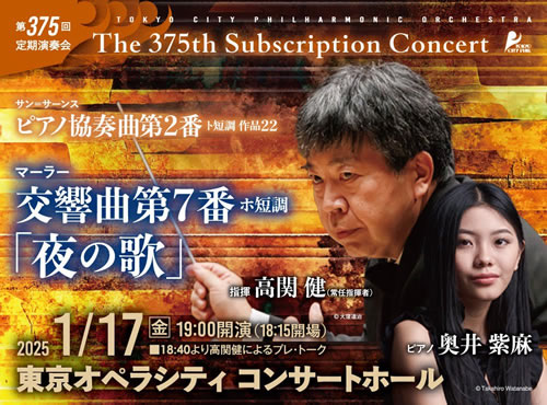 昨夜(1月17日金曜日)、19時開演の高関健指揮東京シティ・フィル(コンサートマスター:戸澤哲夫)のコンサートを聞いた。