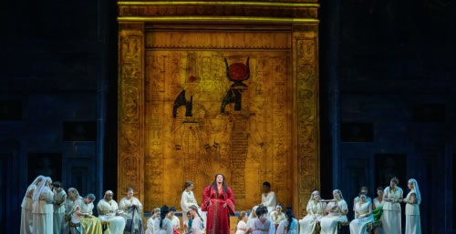 アイーダのエンジェル・ブルー(ソプラノ)、アムネリスのクタージ(メゾ・ソプラノ)の将軍ラダメスをめぐる恋のさや当てがストーリーの中心だが、この2人の歌唱は圧倒的だ。