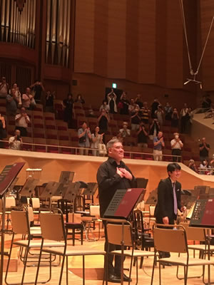 コンサート終了後にコンサートマスターの水谷晃を伴って現れたアラン・ギルバート