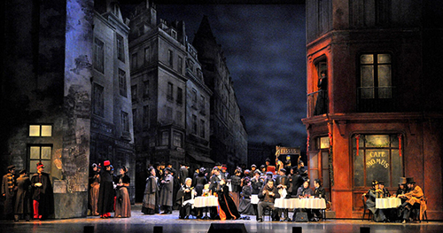 このプロダクションは実によく考えられた舞台で、若く貧しい芸術家たち(ボヘミアン=ラ・ボエーム)の生活と冬のパリの詩情が胸に迫って来る。