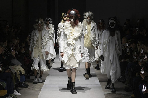 川久保玲と村山伸の間にどんな話し合いがあったかは知らないが。現在の人間界を俯瞰した時に感じる閉塞感・絶望感を表現するのにこのマスクを用いたのだろうか。洋服よりマスクの方に目が行ってしまう。