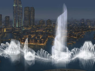 2009年に造られたこの「ドバイ・ファウンテン」は構造物の端から端まで275mあって世界最大規模。