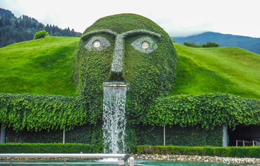 異様な風景に驚かされますが、これはオーストリアのチロルにある「スワロフスキー・クリスタルワールドの噴水」。巨人の口から絶え間なく滝が流れ落ちています。
