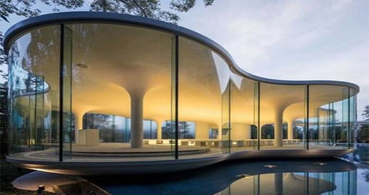 最近は「曲面強化ガラス」なるものも出現しまして、海外ではこんな美しい建築物も造られるようになりました。