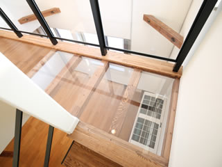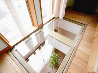 ところが「壁面」ではなく「床面」にガラス材を用いるようになりまして、一般家庭用でもこのようなガラス・フロアリングが出始めているのですね。