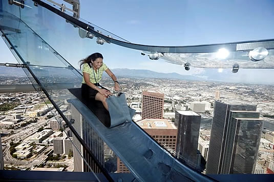 さて、さらに最近では、スカイウォークに留まらず、高層ビルにガラスのすべり台を造っちゃおうという動きが顕著に。