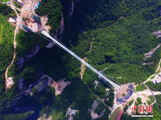 高さが300メートル、全長430メートルという長大なモノ。橋自体は驚くことはありませんが、コレが「全床面ガラス張り」なのですよ。