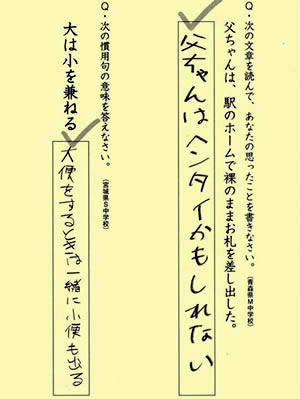 コレに触発されて、今回は子供のテストの珍解答集を。まずはコチラ・・