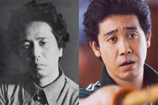 | 日岡兼三氏(左)と映画で彼を演じた大泉洋 |