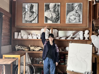 その師は、白を基調とする「地中海シリーズ」などで知られる宮崎県出身の末原晴人画伯。その絵画教室に入門し、厳しいデッサン指導を受けたそうです。