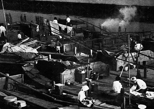 彼らの福利厚生・防犯のため「水上学校」や「水上警察」などが設置されましたが、1960年代後半から水上貨物のコンテナ化が進み「艀」の需要が減るにつれ、水上生活者の人口は激減の一途をたどったということです。