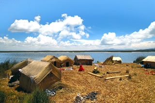 湖上には「トトラ」と呼ばれる葦を編んで浮かべた浮島がいたるところにあり、現在もウル族などの先住民が居住しています。
