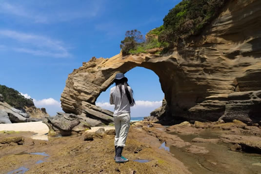 さて、種子島の『アーチ岩』は潮風の「風化」によって出来たものですが、海流に洗われてできた有名な「天然橋」がオーストラリアにある『ロンドンアーチ』です。