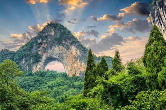 はてさてお次は、「世界で最も美しい」と呼ばれる天然橋。それが中国月亮山の『おとぎ話の天然橋』。