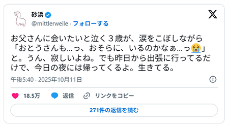 ◆涙ながらに呟いた3歳の娘「お父さんもお空に…」直後、“予想外の結末”に