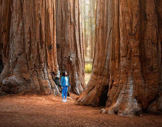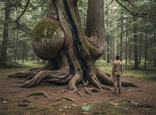 巨木の「隙間」でゴキゲンのお姉さん。あらま、セクシー♪