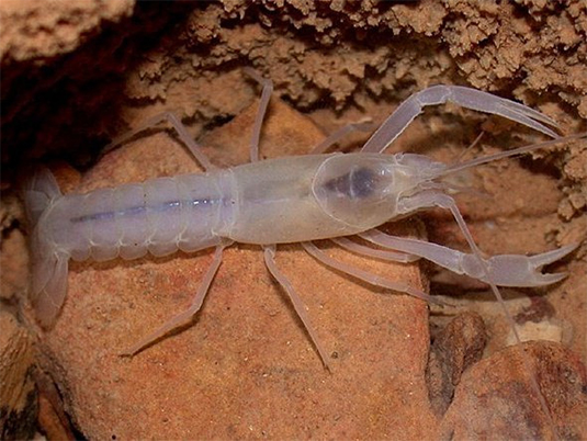 イカ、タコと来たところで、じゃあ海老はどうなんだ? ・・という事で見つけたのが、アメリカの洞窟に生息しているという「ケイブ・クレイフィッシュ」。