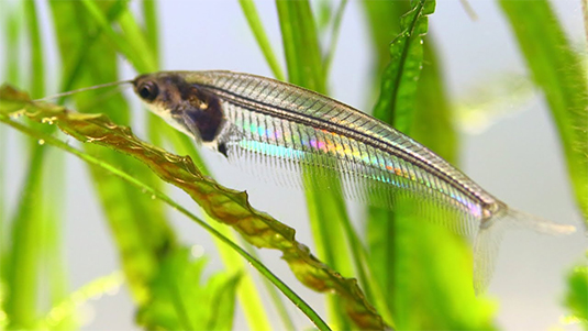 お次は、ナマズに近い種類の熱帯魚「トランスルーセント・グラスキャット」。