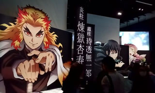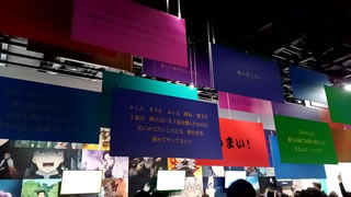 午前中食べるにはやや重し。 さて、私は知らなかったのですが、東京マラソンの日でした。 で、予約の時間に間に合うように出たらば、目的地を目の前にして、マラソンで封鎖。 スタッフに聞いて、京橋の地下鉄入口に入って地下を渡って無事到着。 柱展、長蛇の列に恐れをなしつつ、しのぶさんや炭治郎の衣装を着た子供たちもいて、めっちゃかわいい。 個性の間。 悲鳴嶋さんの戦いシーンを始めて見て感動!感激!! 言葉の間。 表情の間。