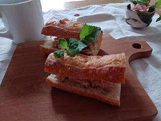 アップルパイが有名なようなので、バニラアイスも付けて。 バゲットは大好きなツナサンドにしてみる。 がんばれがんばれ!! (配信:2025.10.9