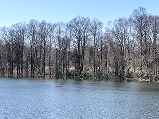 街中の桜は盛りを過ぎているが 湖の畔は未だ蕾だ