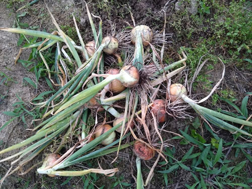 Harvested 500 onions. If I dry them for about 10 days and hang them out in the shade, they will be edible until winter.