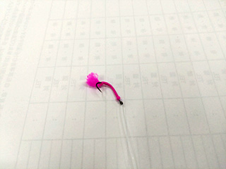 お土産のヒメマス釣りの仕掛けを作っています。