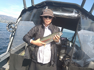 The second day of fishing in Canada. Today we went to Okanagan Lake and had a very satisfying fishing experience. Catch was kokanee 5, rainbow 5, the largest rainbow was over 25 inches. This time, since the Japanese rig wasn't catching many fish, I switched to a Jim rig, which I can catch also rainbows early on. And the lake was so big and beautiful, it felt like fishing in Puget Sound. I was very happy to be able to ask Jim about the questions I had about fishing in Japan. I hope to use what I learned next season. Most Japanese anglers aspire to fish in Canada.I am very happy that my dream has come true this time. Thank you to Jim for your fishing guidance and helpful advice over the two day. And I also thank his wife for taking care of me. My final fishing trip will be on the 23rd, when I will go salmon fishing in Puget Sound with a Japanese friend.