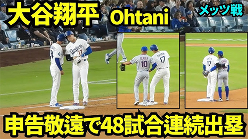 大谷翔平選手 今日も 申告敬遠 で 連続出塁記録更新