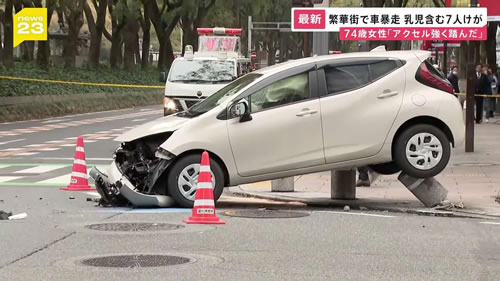 75歳?女性 単独事故 ですが 通行人7人 巻き添えに
