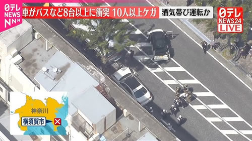 乗用車が 暴走し 路線バスなど 8台に衝突