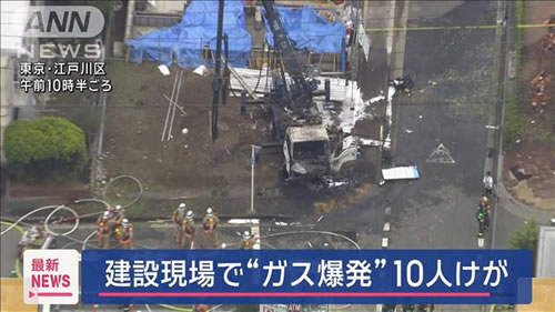 掘削作業中 ガス管 壊して そこから ガス漏れ 引火爆発