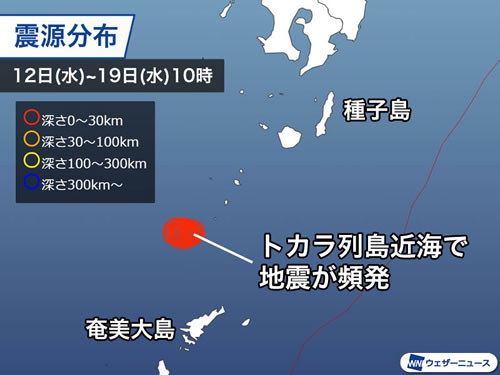 ここ最近 トカラ列島辺り 頻繁に地震があると