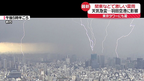 今 TV中継 で 東京は 激しい雷雨 だそうです