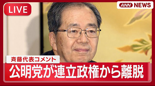 公明党・斉藤代表 高市新総理に 連立離脱 を伝えたと