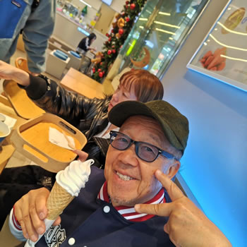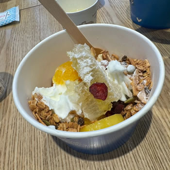 巣蜜ハチミツがガッチリ入ってお砂糖は入っていません。トッピングはチョイスしてると思います。(ここでも私はみんなの食べてる姿を見てるだけ)