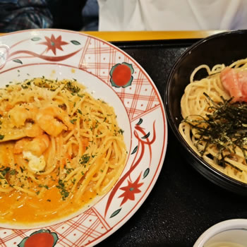 早めの夕食はパスタ🍝、デザートまで食べて、今回も食べてばかりの旅でした🤣