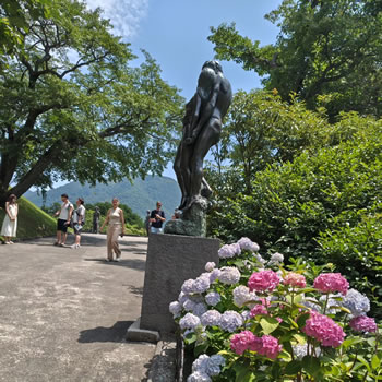 おと休パス4日目、暑くなりそうなので早めに彫刻の森美術館へ行きましたが、10時前でもゆっくり森林浴しながら観るという余裕はなく、観たいものだけ観て箱根湯本に戻ってきました。