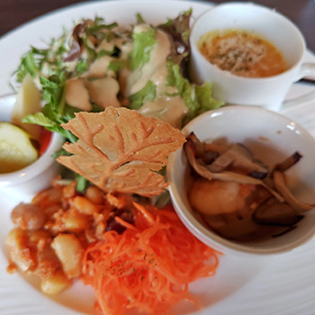 花見山の奥の奥、迷子になっちゃったよ でも福島の街並みが見えて色々なお野菜がワンプレートに盛り付けられて気持ちが上がりましたよ 是非行ってみて