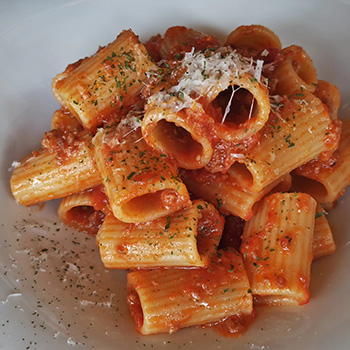 コレがコルティーレ名物のワンプレート。そしてパスタがとても美味しい。茹で加減が最高。